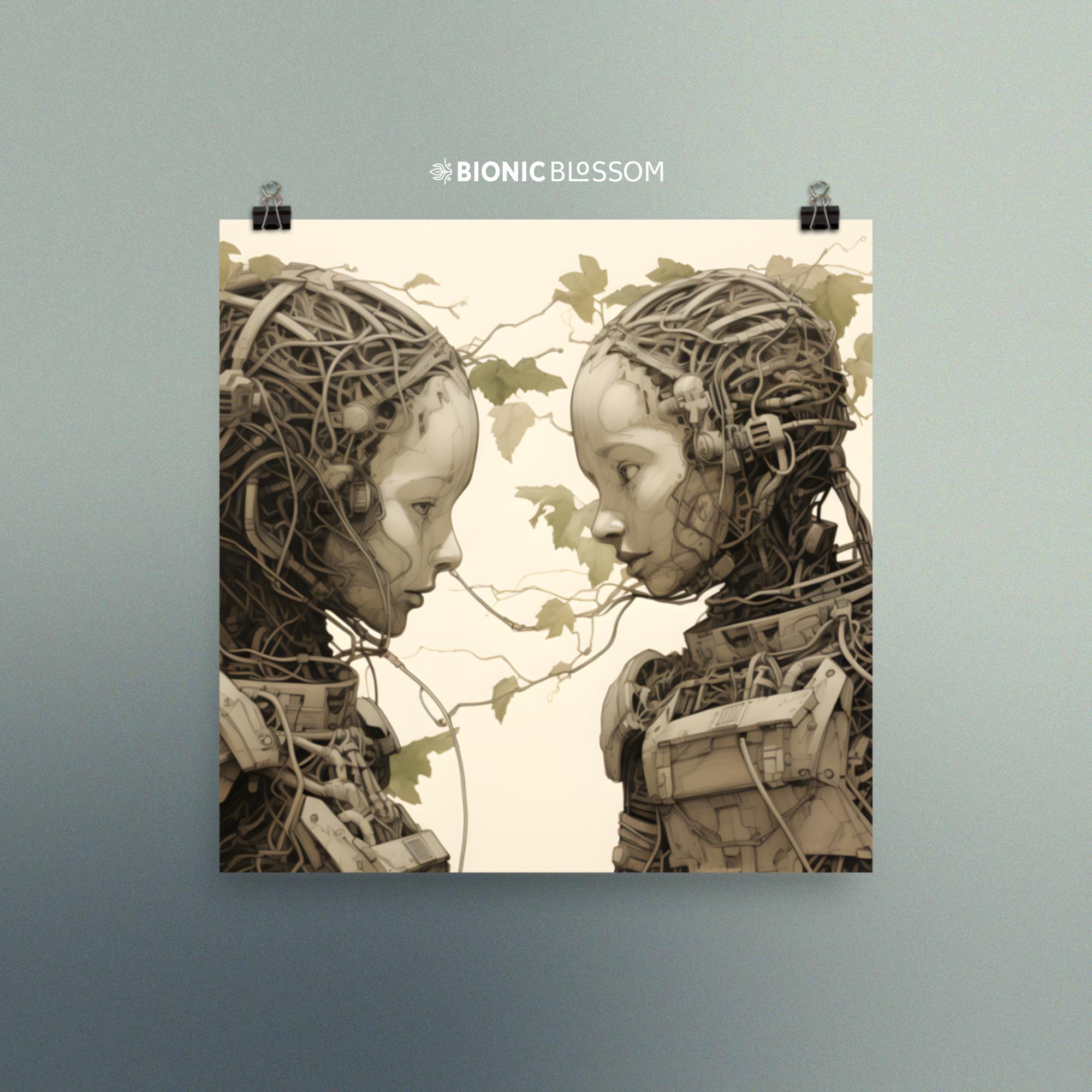 Explore a dystopian world where nature and technology intertwine, and witness the rise of cyborgs and their dominant presence. Add an intriguing touch of dystopian allure to your space with this striking poster.